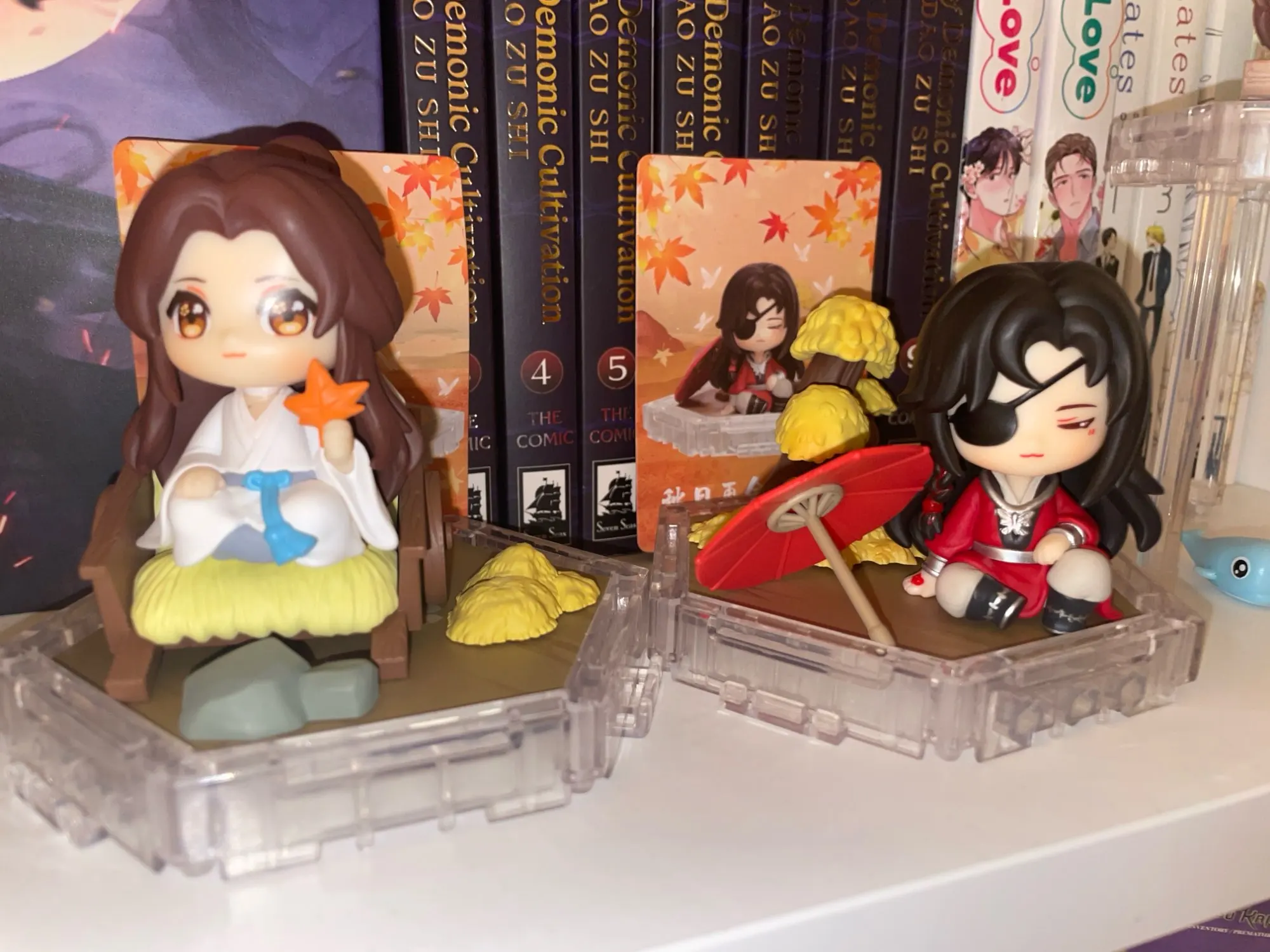 The figures feature adorable miniatures of Xie Lian and Hua Cheng, capturing their essence and bringing them to life in vibrant seasonal outfits. With intricate details and high-quality craftsmanship, these collectibles make the perfect addition to any Heaven Official’s Blessing fan's display. 📦✨